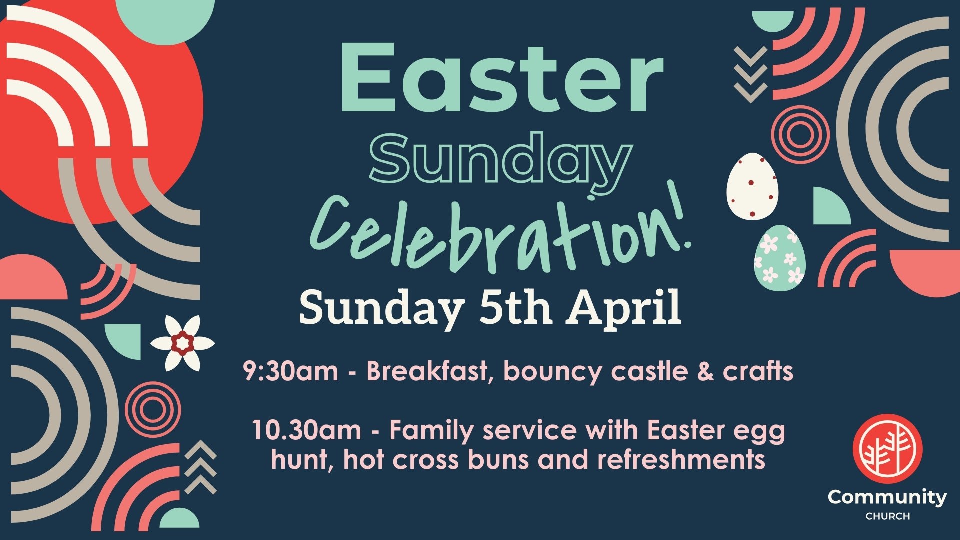 Our Easter Sunday celebrations start with a Family Fun Breakfast at 9.30am. We'll have a bouncy castle, arts and crafts and bacon butties.